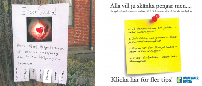Bidrag 62 – plats 2 Vinnande bidrag: ”Alla vill ju skänka pengar, men…” för Barncancerfonden
